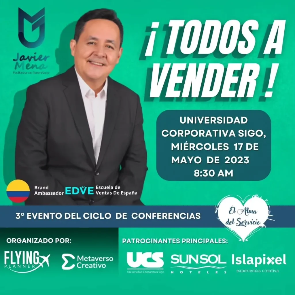 En esta oportunidad traemos al reconocido facilitador de aprendizaje colombiano Javier Mena con la conferencia ¡Todos a Vender!